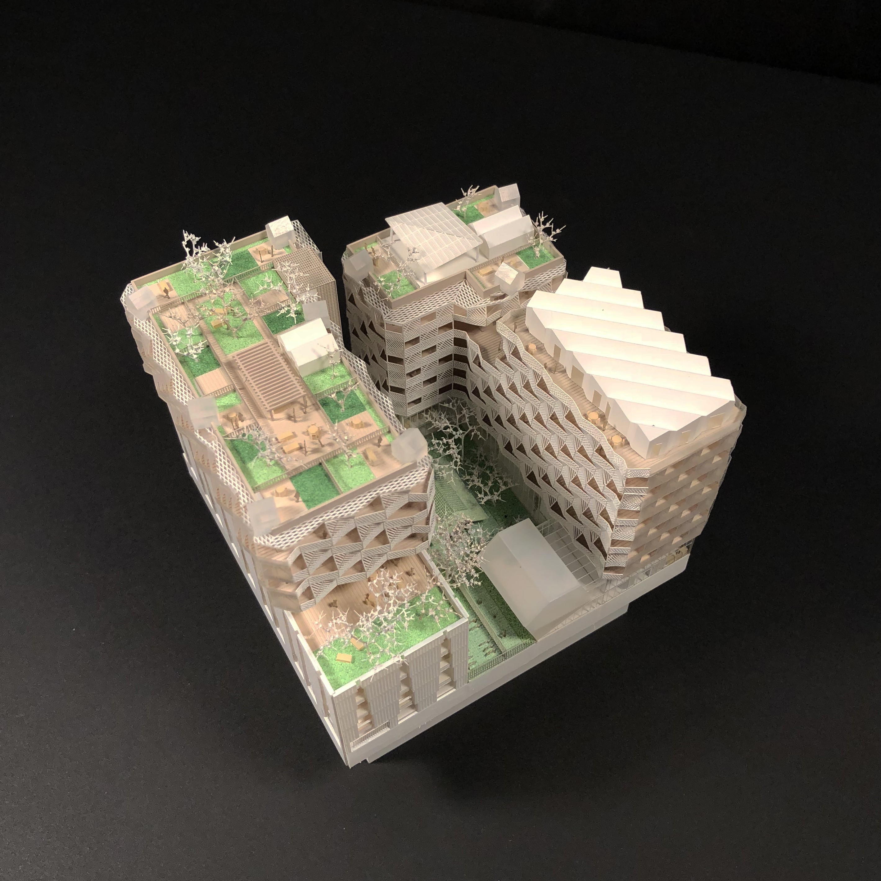 Cette ambition programmatique riche et complexe, est une incitation à de nouveaux usages. Ainsi, à travers l’imbrication de volumes et de respirations, nous avons recherché une forme urbaine capable de mutualiser les espaces et services afin de devenir un véritable catalyseur de la vie de quartier.