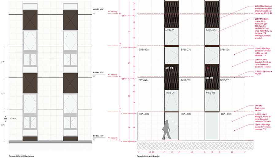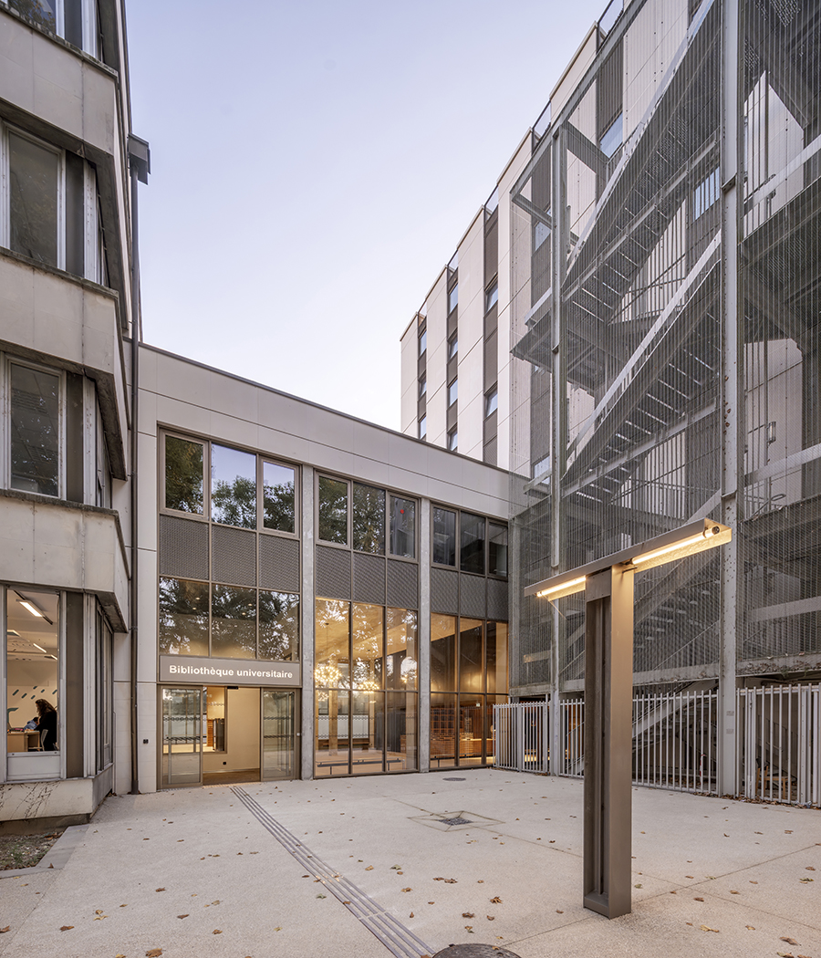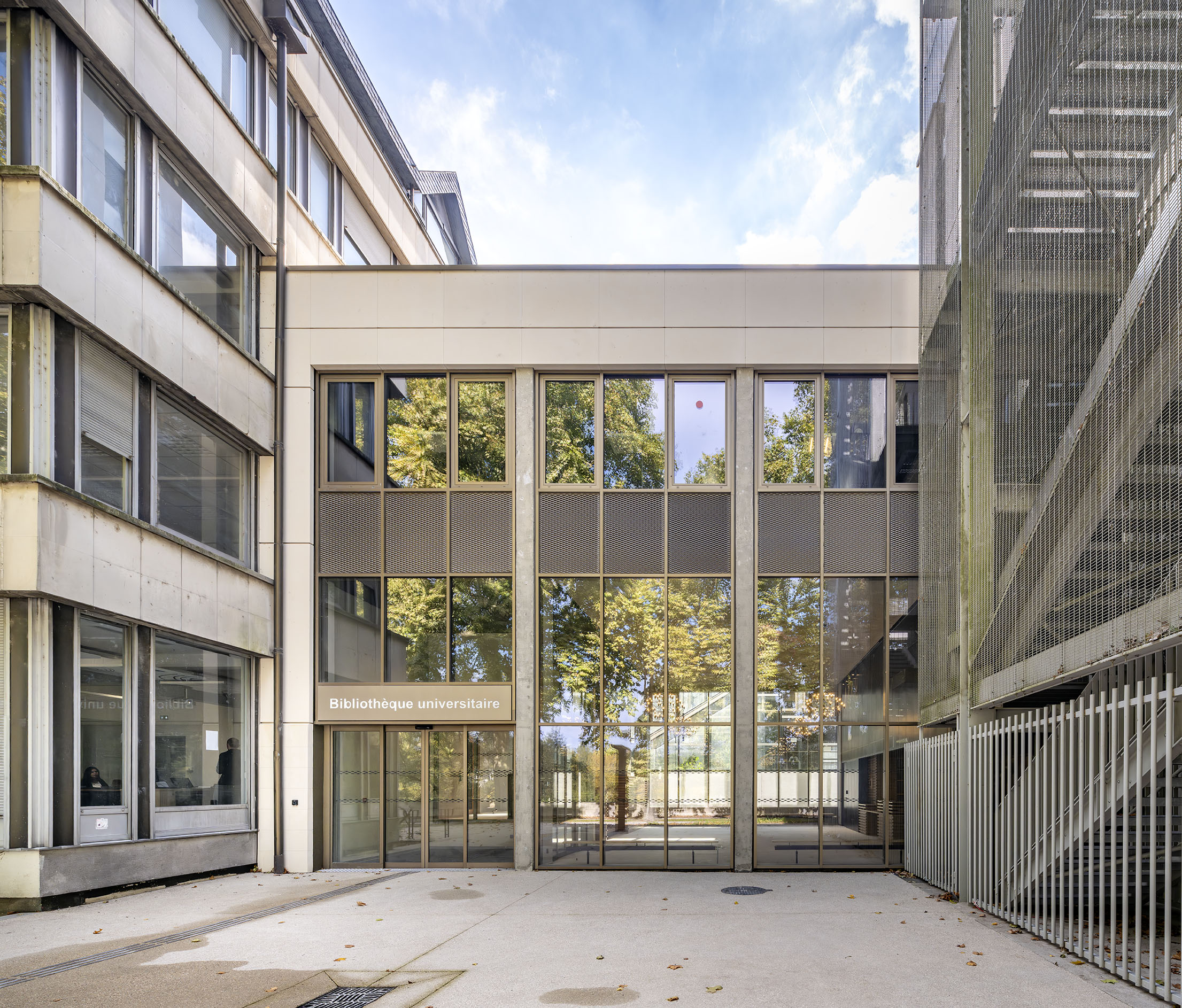 Réhabilitation de 2 bâtiments universitaires - la bibliothèque (Bâtiment B) et le bâtiment d'entrée et amphithéâtres (Bâtiment D), création de nouvelles entrées, rénovation des façades et aménagements extérieurs