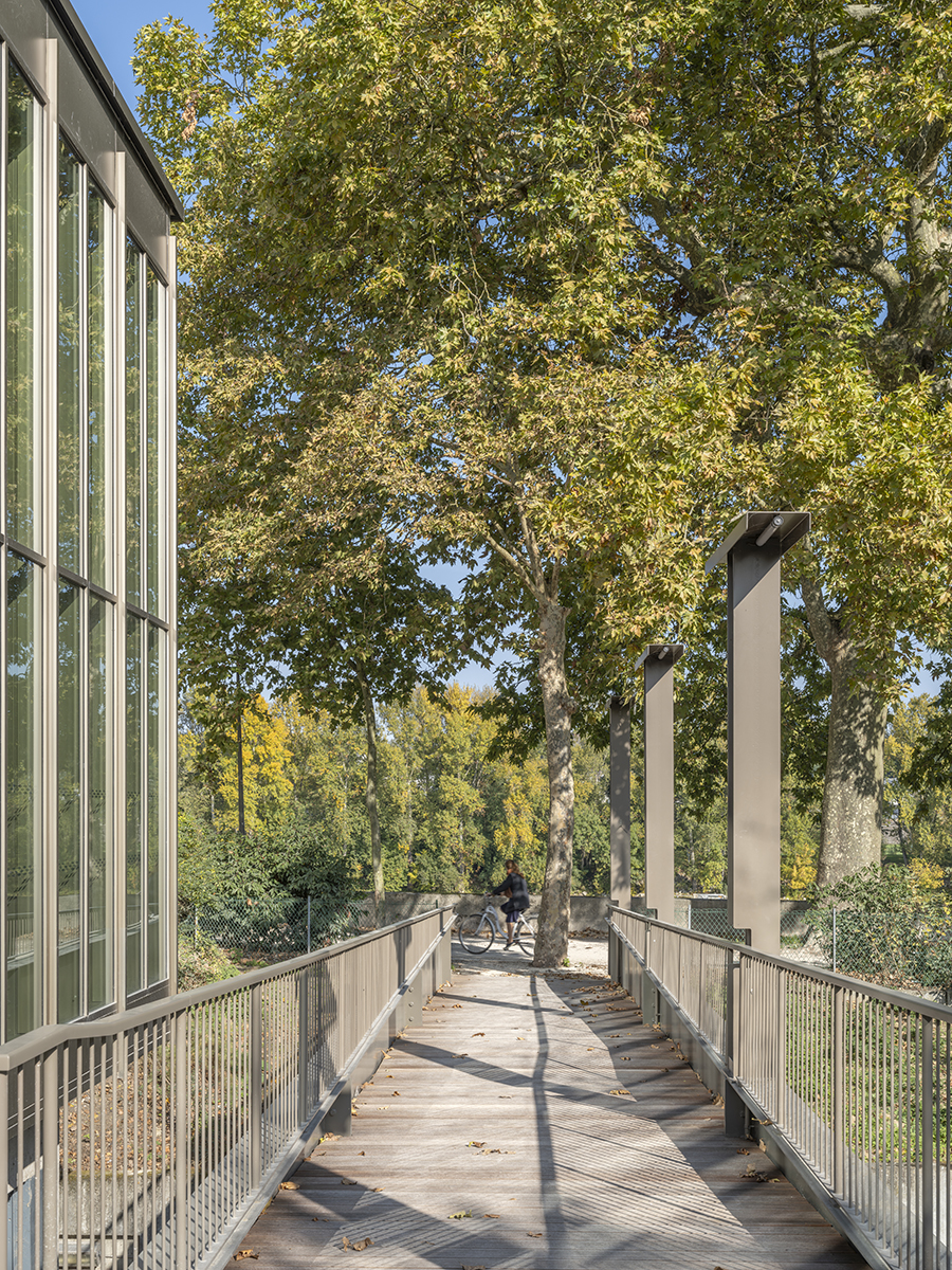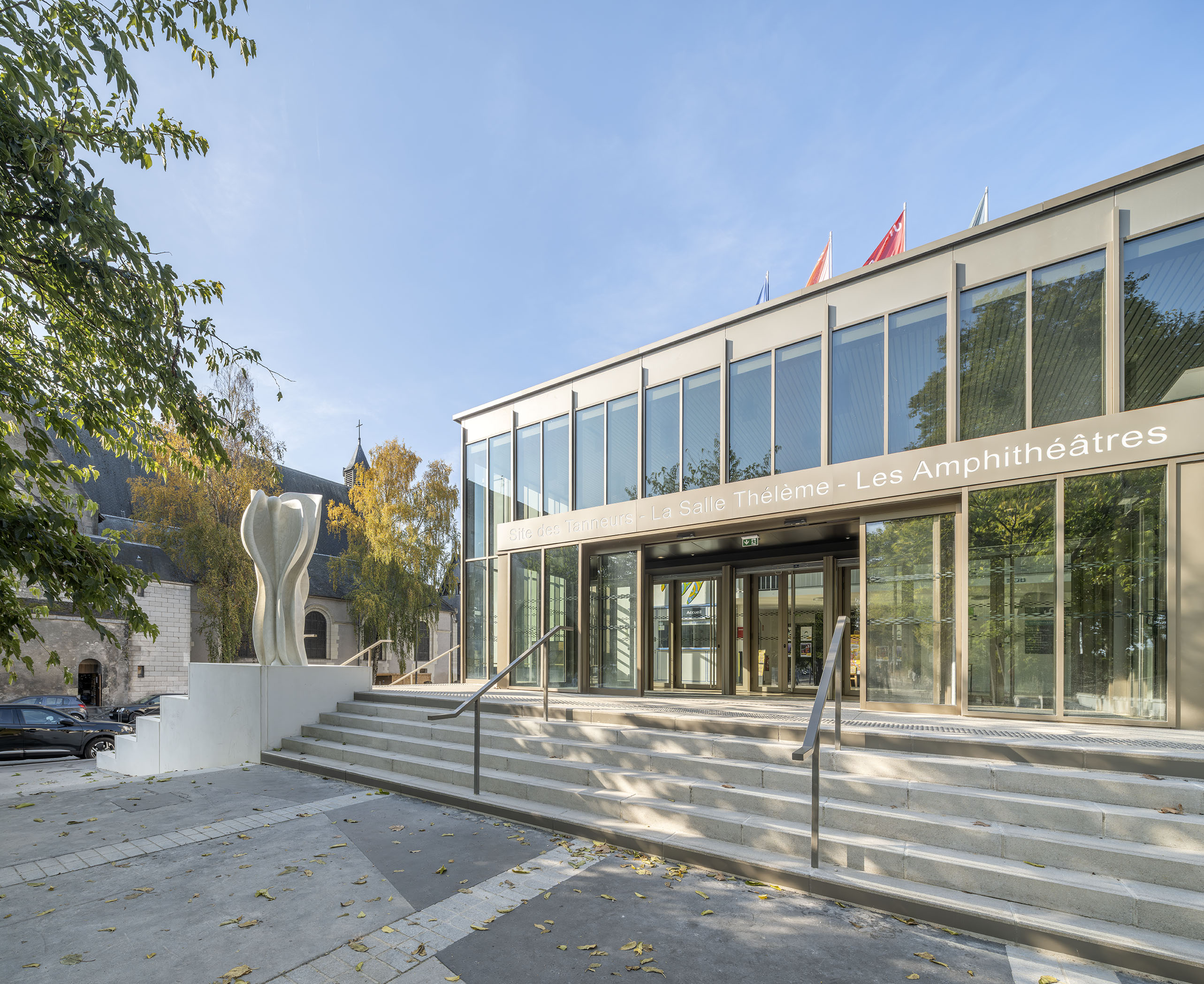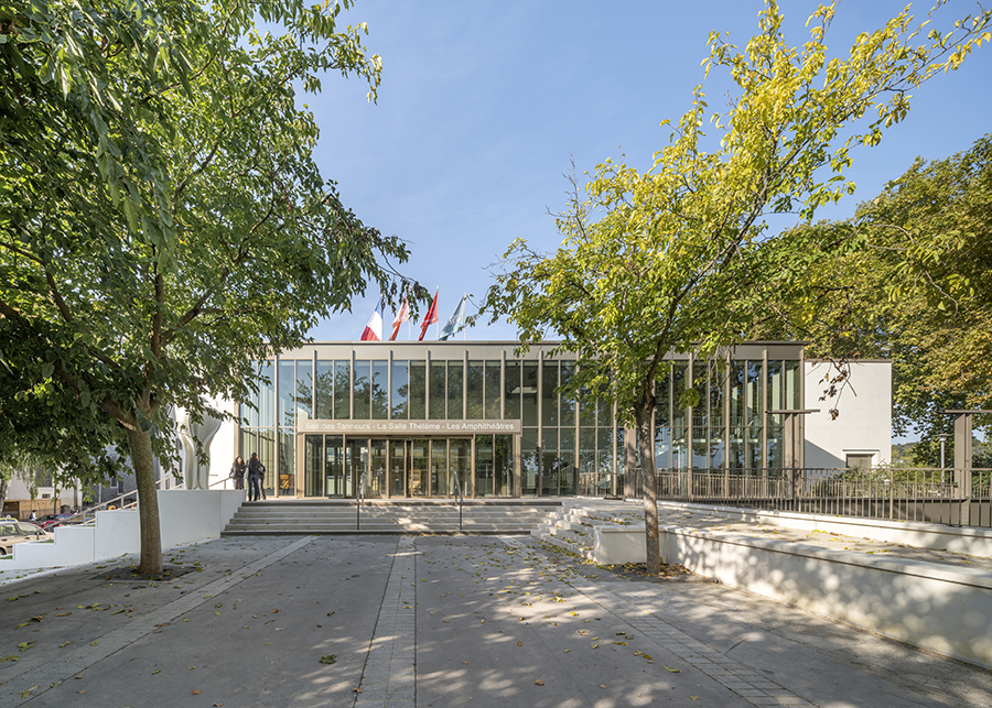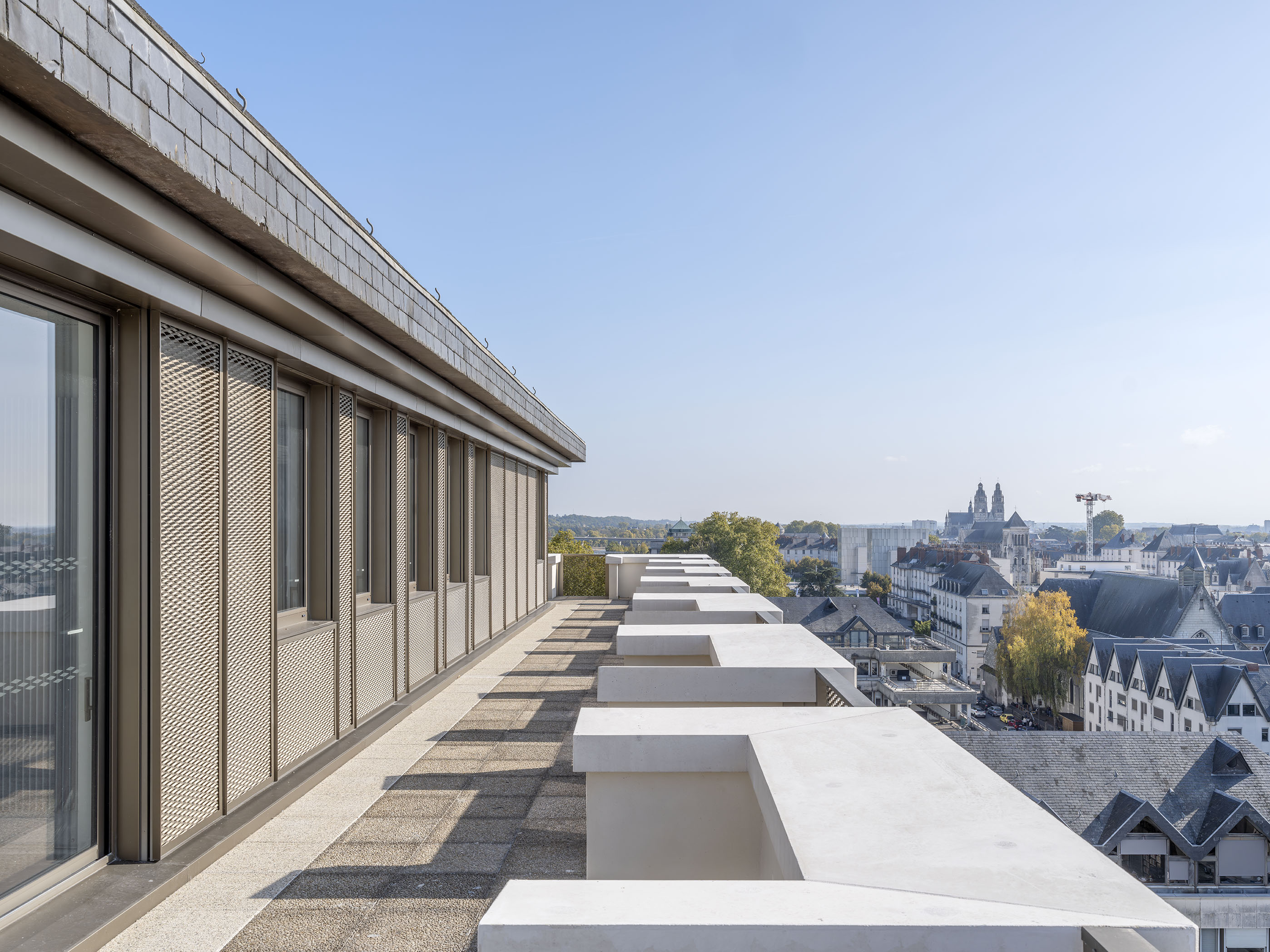 The University of Tours, located on Rue des Tanneurs, occupies a historic site on the banks of the Loire River. It comprises four buildings, designated A, B, C, and D. Buildings B and C house the University Library and student lecture halls, respectively, and date from the early 1970s. Building D includes the main entrance, the Salle Thélème performance hall, and three lecture halls. Our proposal to the client for this project was to work in harmony with the existing buildings and the University. Our work primarily involved restoration: restoring the facades, highlighting the architecture, simplifying circulation routes, and improving the technical aspects of this heritage architectural ensemble and its site. Here, there are no grand gestures, only discretion. The exterior spaces and forecourts have been completely redesigned to reintegrate the university campus into its urban context between the Loire riverbanks and the old town. The circulation patterns have been redesigned to streamline student journeys while improving accessibility for all. A footbridge linking the plaza to the Loire River provides easier access to the quayside.