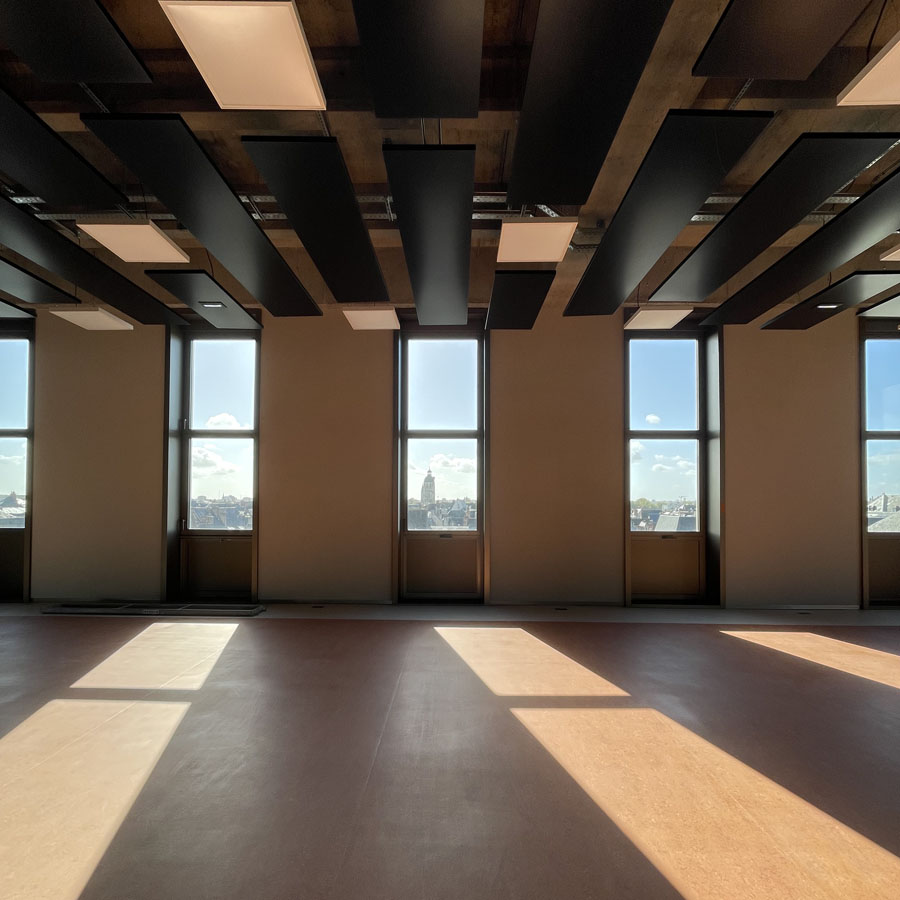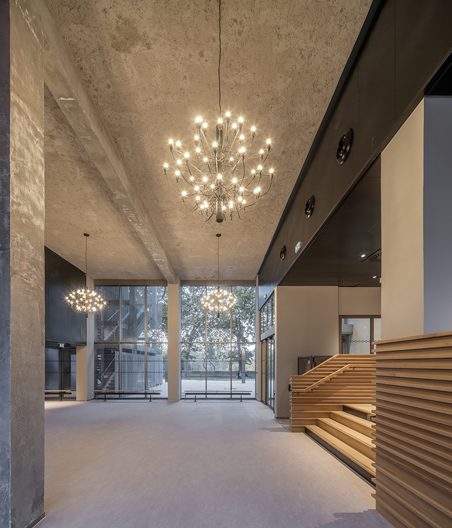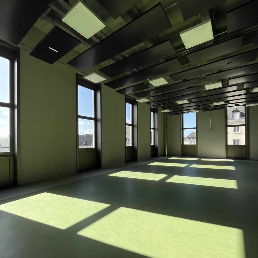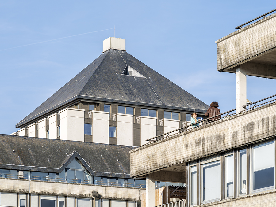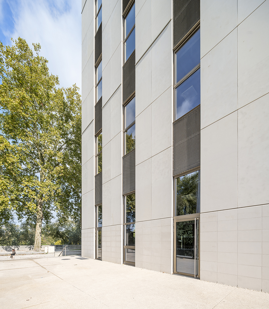 The University of Tours, located on Rue des Tanneurs, occupies a historic site on the banks of the Loire River. It comprises four buildings, designated A, B, C, and D. Buildings B and C house the University Library and student lecture halls, respectively, and date from the early 1970s. Building D includes the main entrance, the Salle Thélème performance hall, and three lecture halls. Our proposal to the client for this project was to work in harmony with the existing buildings and the University. Our work primarily involved restoration: restoring the facades, highlighting the architecture, simplifying circulation routes, and improving the technical aspects of this heritage architectural ensemble and its site. Here, there are no grand gestures, only discretion. The exterior spaces and forecourts have been completely redesigned to reintegrate the university campus into its urban context between the Loire riverbanks and the old town. The circulation patterns have been redesigned to streamline student journeys while improving accessibility for all. A footbridge linking the plaza to the Loire River provides easier access to the quayside.