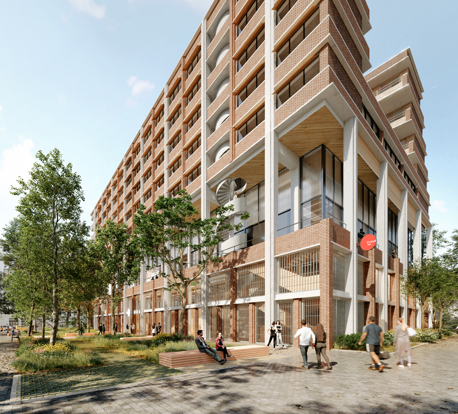 - Le projet affirme une insertion sobre et durable : briques de réemploi, béton clair et menuiseries brunes composent une identité contemporaine et contextuelle. Engagé dans une démarche bas carbone, le projet intègre le réemploi jusque dans les façades et les aménagements intérieures, pour offrir un lieu de vie frugal, fonctionnel et en lien avec son environnement. le projet s’inscrira dans une démarche ambitieuse de labellisation Bâtiment Durable Francilien (BDF, Ekopolis).