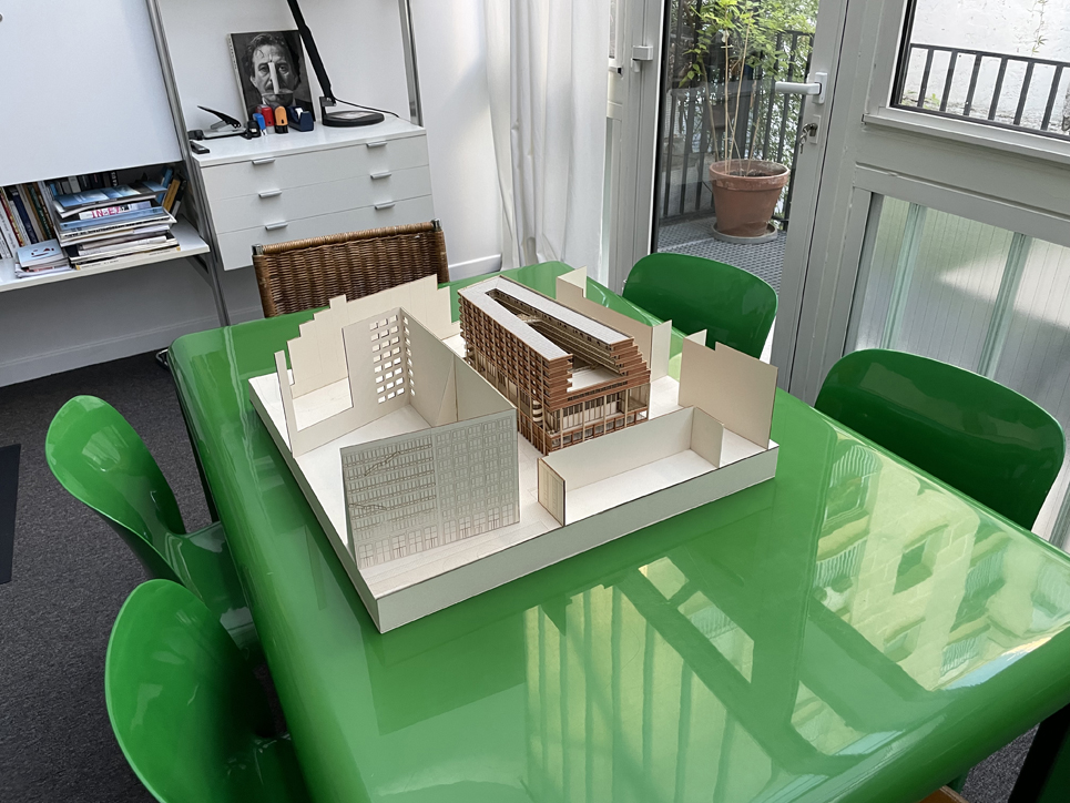 - The project promotes a sober and sustainable integration: reused bricks, light-colored concrete, and dark window frames contribute to a contemporary and contextual identity. With a strong low-carbon approach, the project incorporates reused materials even in the façades and interior fittings, aiming to provide a functional, frugal living space connected to its environment. The project will pursue the ambitious “Bâtiment Durable Francilien” (BDF, Ekopolis) sustainability certification.